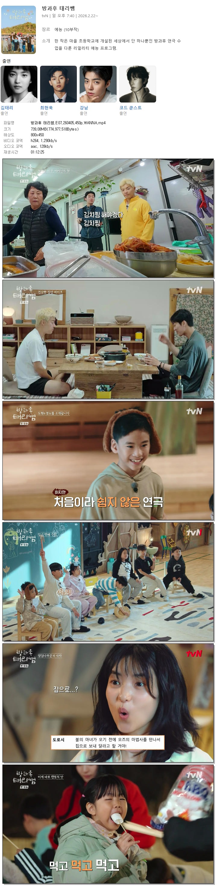 | [TVN] 방과후 태리쌤.E07.260405.450p.WANNA[김태리, 강남].mp4 | 739.1 M | 01:12:25 | 800x450 |