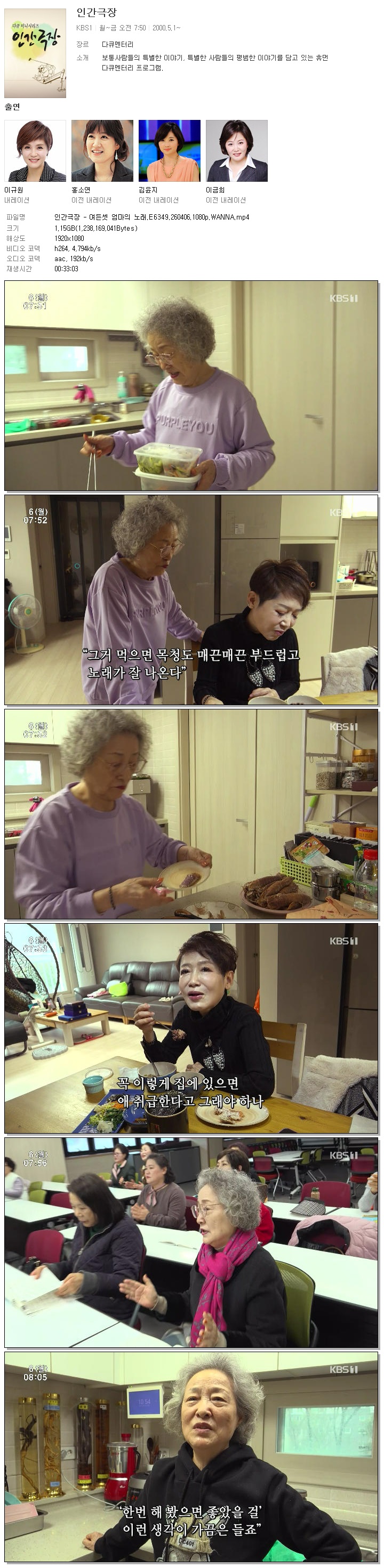 | [KBS1] 인간극장.E6349.260406.1080p.WANNA.mp4 | 1.2 G | 00:33:03 | 1920x1080 |