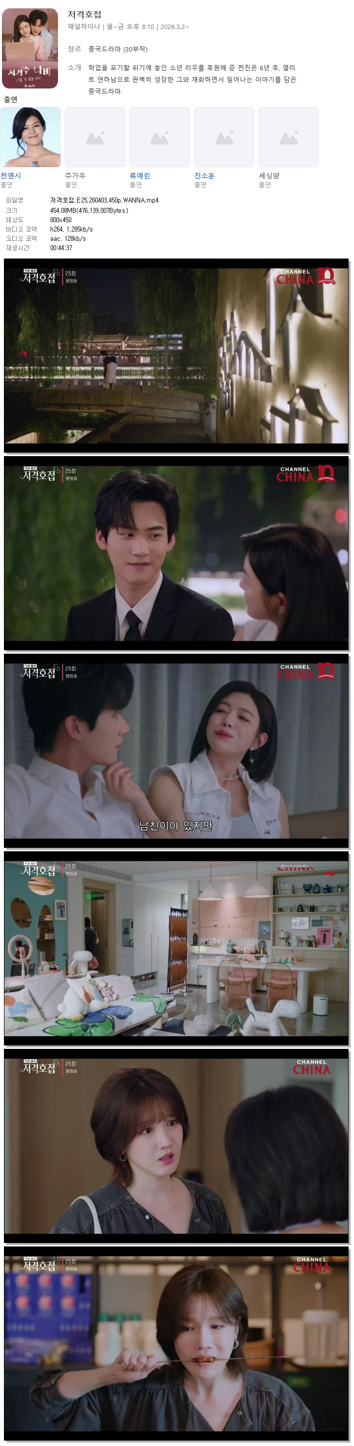 | [채널차이나] 저격호접.E25.260403.450p.WANNA[천옌시, 주가우].mp4 | 454.1 M | 00:44:37 | 800x450 |