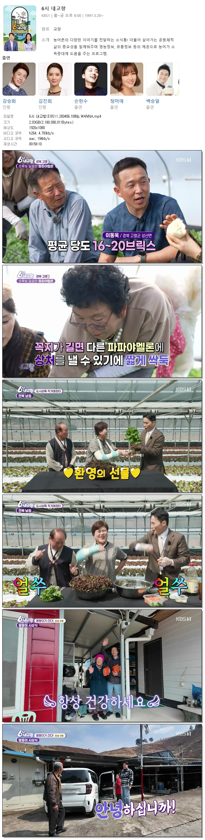 | [KBS1] 6시 내고향.E8511.260406.1080p.WANNA[강승화, 김진희].mp4 | 2 G | 00:58:10 | 1920x1080 |