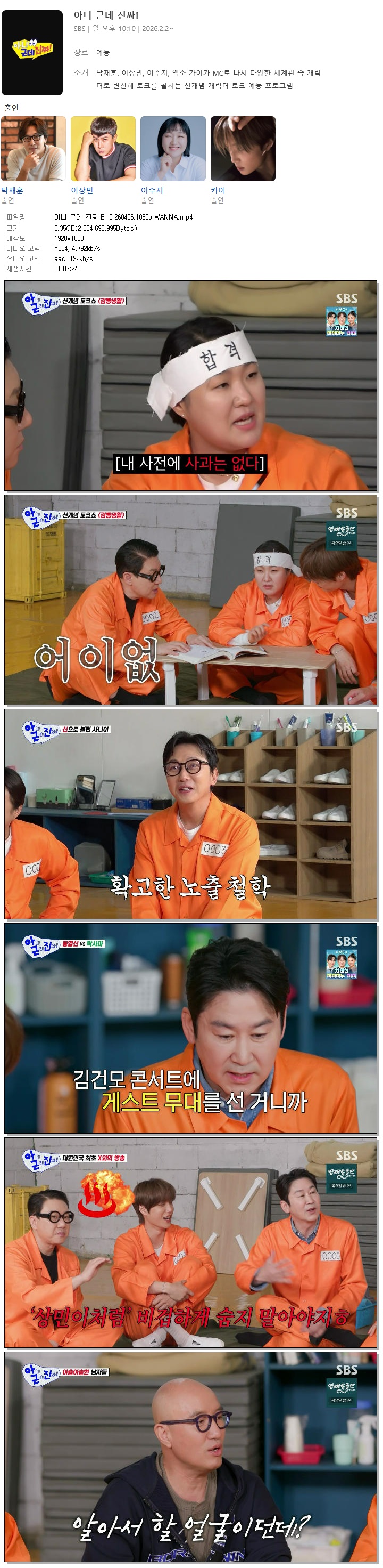 | [SBS] 아니 근데 진짜.E10.260406.1080p.WANNA[신동엽].mp4 | 2.4 G | 01:07:24 | 1920x1080 |