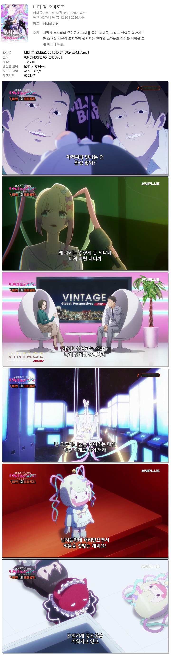 | 니디 걸 오버도즈.E01.260407.1080p.WANNA.mp4 | 885.6 M | 00:24:47 | 1920x1080 |