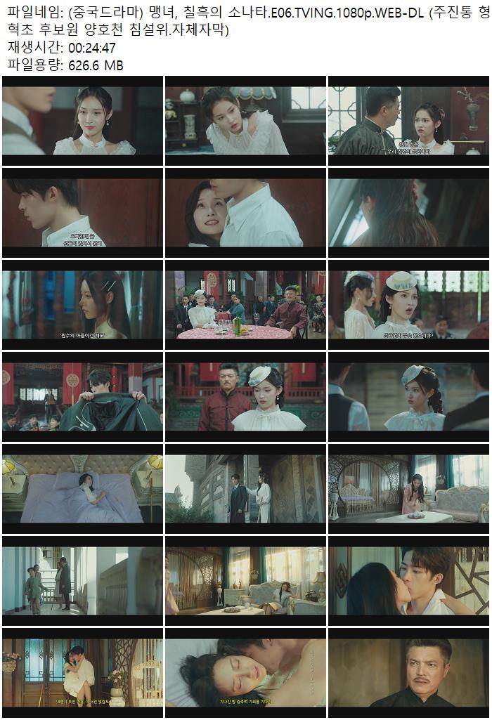 | (중국드라마) 맹녀, 칠흑의 소나타.E06.TVING.1080p.WEB-DL (주진통 형혁초 후보원 양호천 침설위.자체자막).mkv | 626.6 M | 00:24:47 | 1920x1080 |
