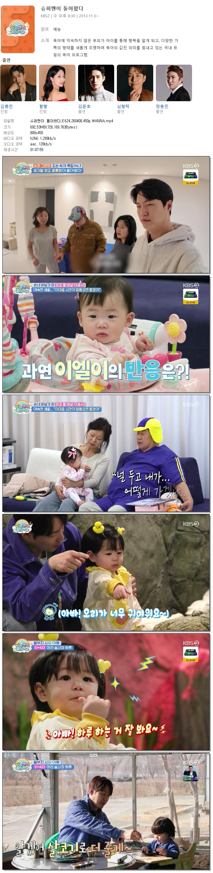| [KBS2] 슈퍼맨이 돌아왔다.E624.260408.450p.WANNA[심형탁, 이용식].mp4 | 692.5 M | 01:07:55 | 800x450 |