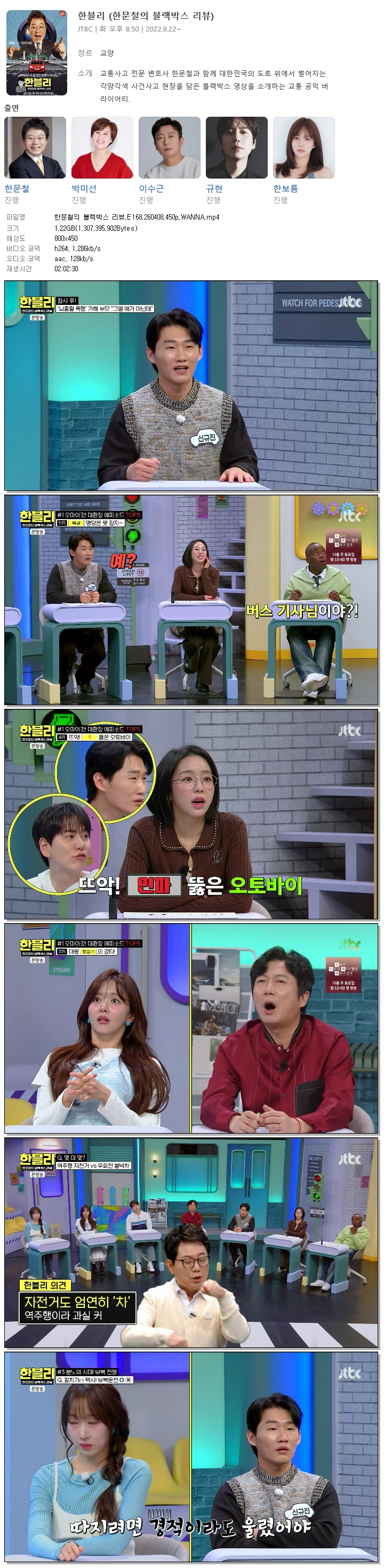 | [JTBC] 한문철의 블랙박스 리뷰.E168.260408.450p.WANNA[신규진].mp4 | 1.2 G | 02:02:30 | 800x450 |