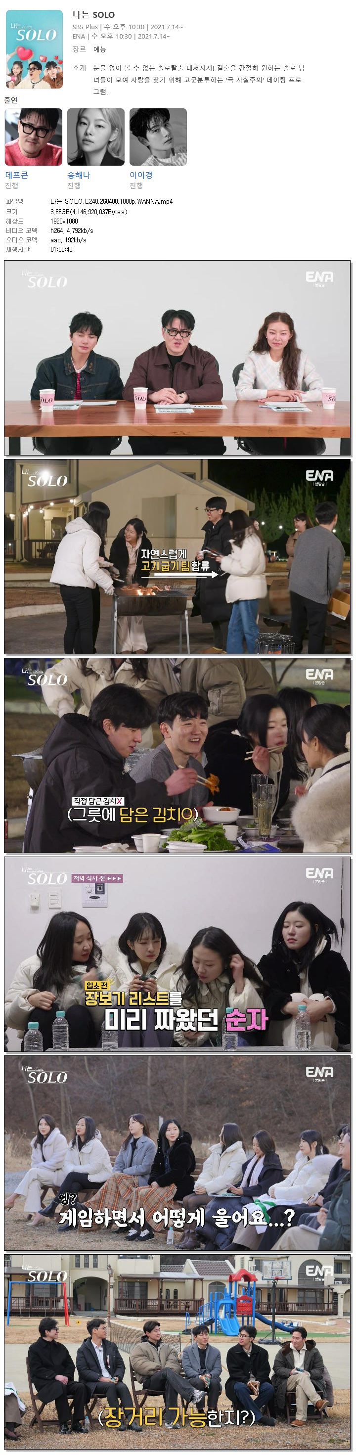 | [ENA] 나는 SOLO.E248.260408.1080p.WANNA[송해나, 이이경].mp4 | 3.9 G | 01:50:43 | 1920x1080 |