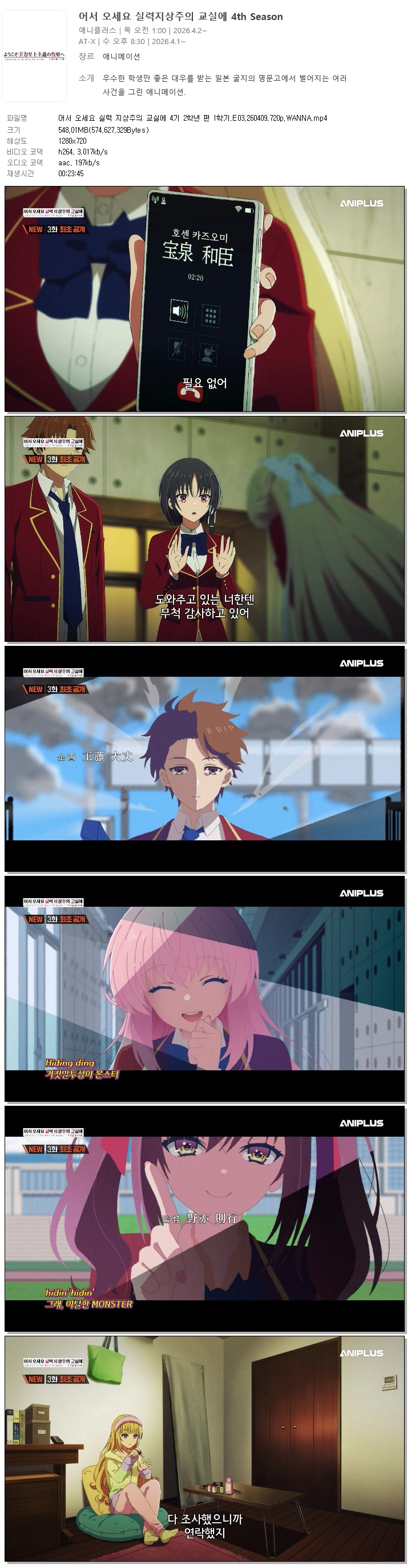 | 어서 오세요 실력 지상주의 교실에 4기 2학년 편 1학기.E03.260409.720p.WANNA.mp4 | 548 M | 00:23:45 | 1280x720 |