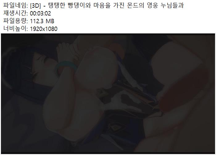 | [3D] - 탱탱한 빵댕이와 마음을 가진 몬드의 영웅 누님들과.mp4 | 112.3 M | 00:03:02 | 1920x1080 |