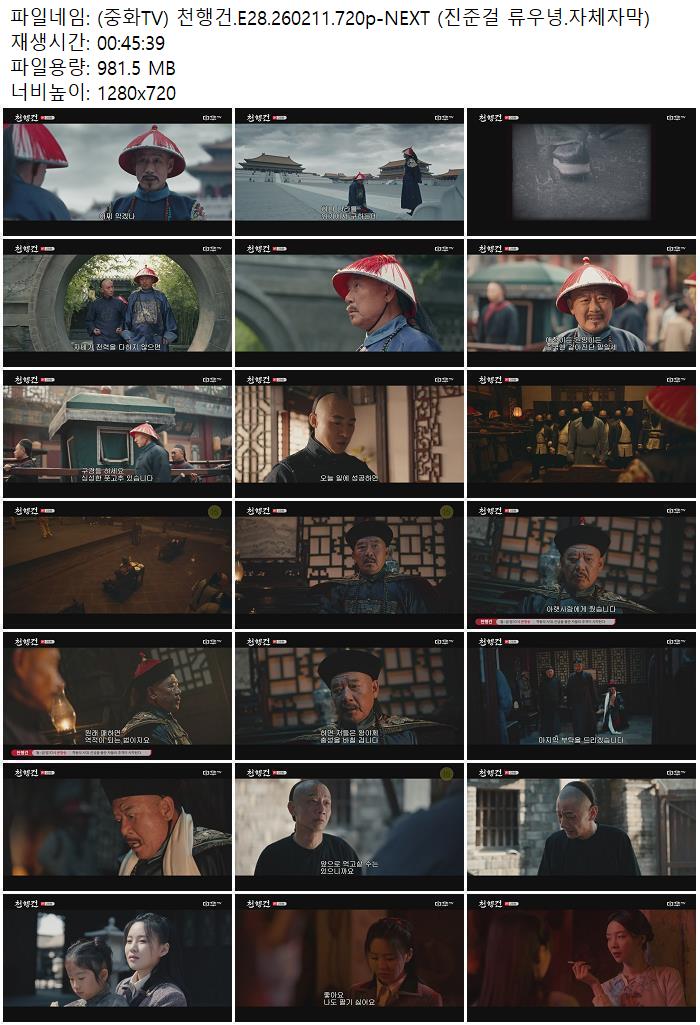| (중화TV) 천행건.E28.260211.720p-NEXT (진준걸 류우녕.자체자막).mp4 | 981.5 M | 00:45:39 | 1280x720 |