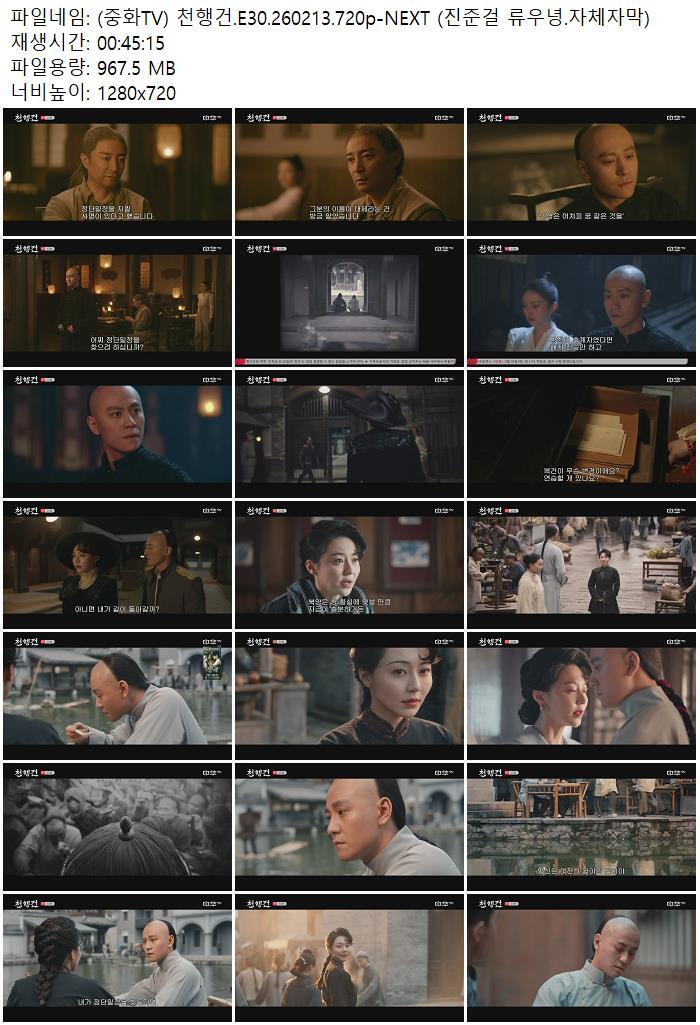 | (중화TV) 천행건.E30.260213.720p-NEXT (진준걸 류우녕.자체자막).mp4 | 967.5 M | 00:45:15 | 1280x720 |