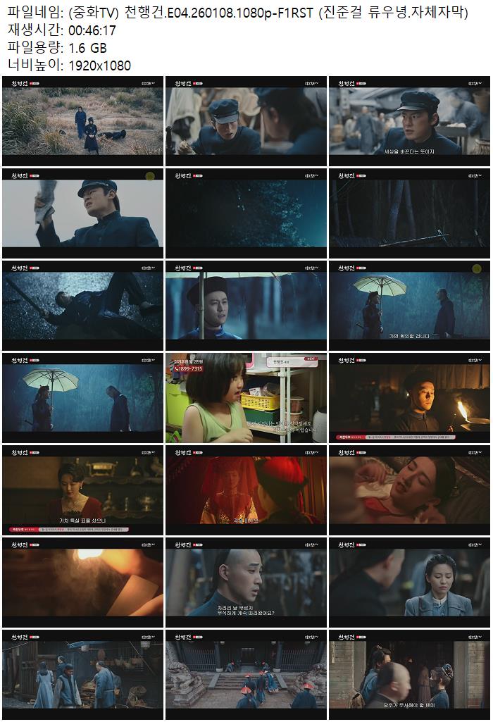 | (중화TV) 천행건.E04.260108.1080p-F1RST (진준걸 류우녕.자체자막).mp4 | 1.6 G | 00:46:17 | 1920x1080 |