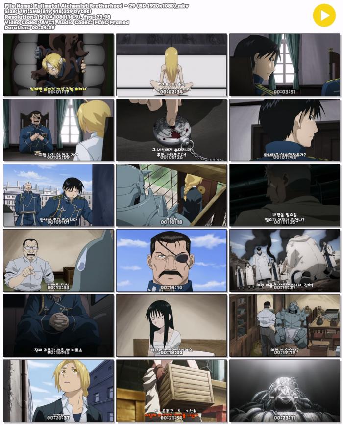 | Fullmetal Alchemist Brotherhood - 29 (BD 1920x1080).mkv | 781.5 M | 00:24:29 | 1920x1080 |