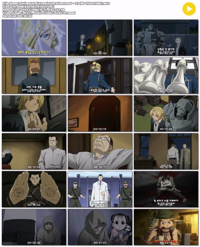 | Fullmetal Alchemist Brotherhood - 31 (BD 1920x1080).mkv | 791.6 M | 00:24:30 | 1920x1080 |