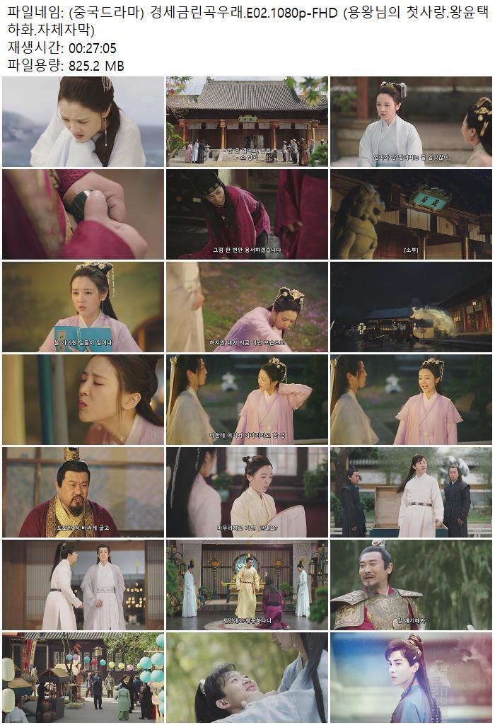 | (중국드라마) 경세금린곡우래.E02.1080p-FHD (용왕님의 첫사랑.왕윤택 하화.자체자막).mp4 | 825.2 M | 00:27:05 | 1920x1080 |