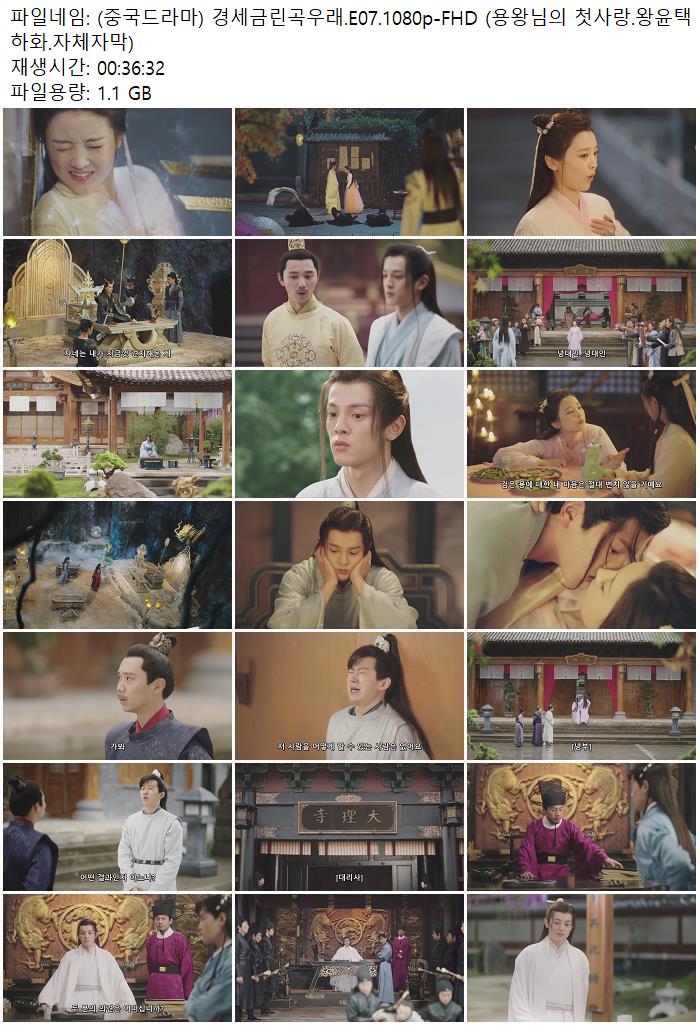 | (중국드라마) 경세금린곡우래.E07.1080p-FHD (용왕님의 첫사랑.왕윤택 하화.자체자막).mp4 | 1.1 G | 00:36:32 | 1920x1080 |