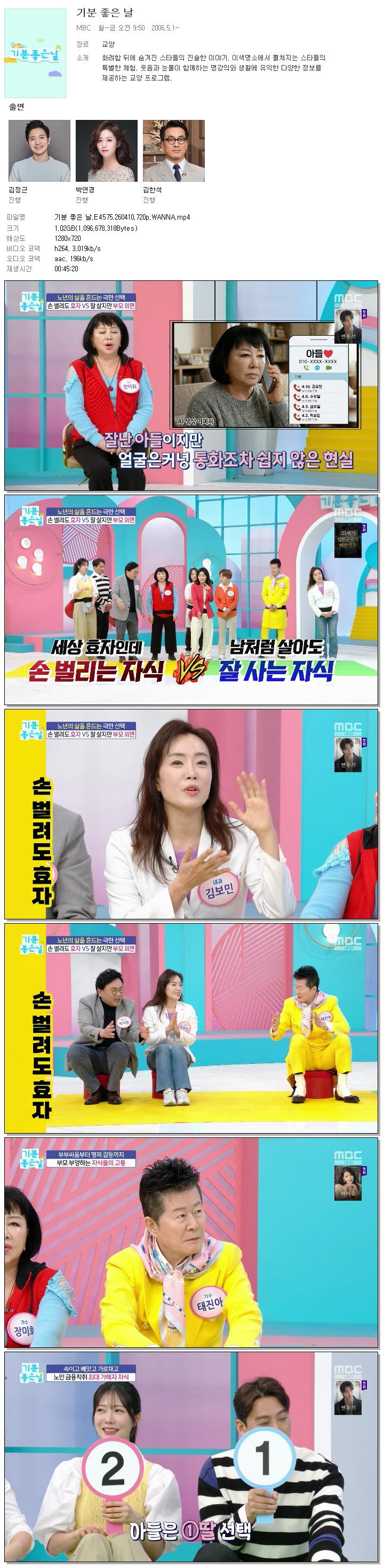 | [MBC] 기분 좋은 날.E4575.260410.720p.WANNA[서인, 박연경].mp4 | 1 G | 00:45:20 | 1280x720 |