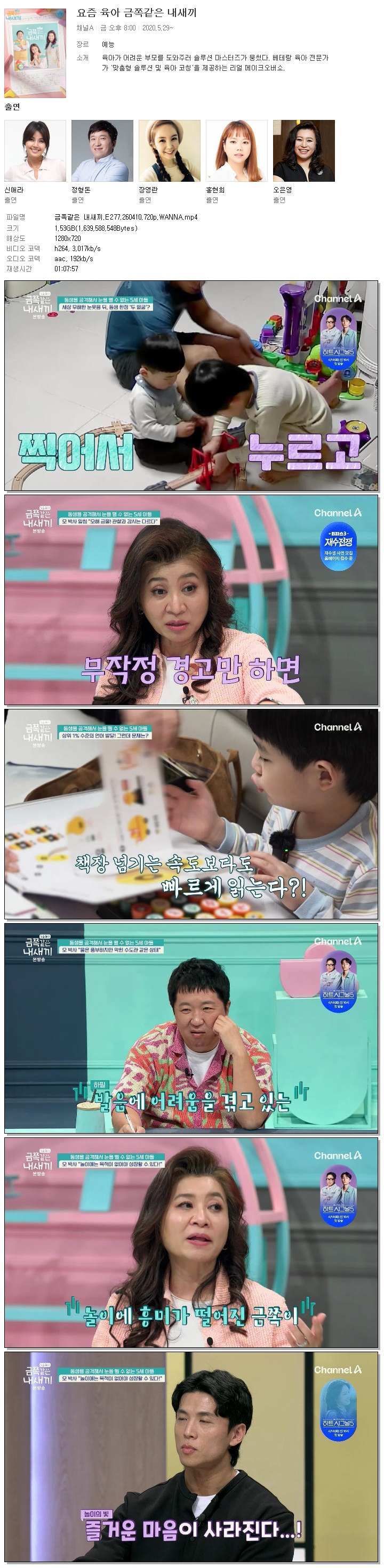 | [채널A] 금쪽같은 내새끼.E277.260410.720p.WANNA[오은영, 신애라].mp4 | 1.5 G | 01:07:57 | 1280x720 |