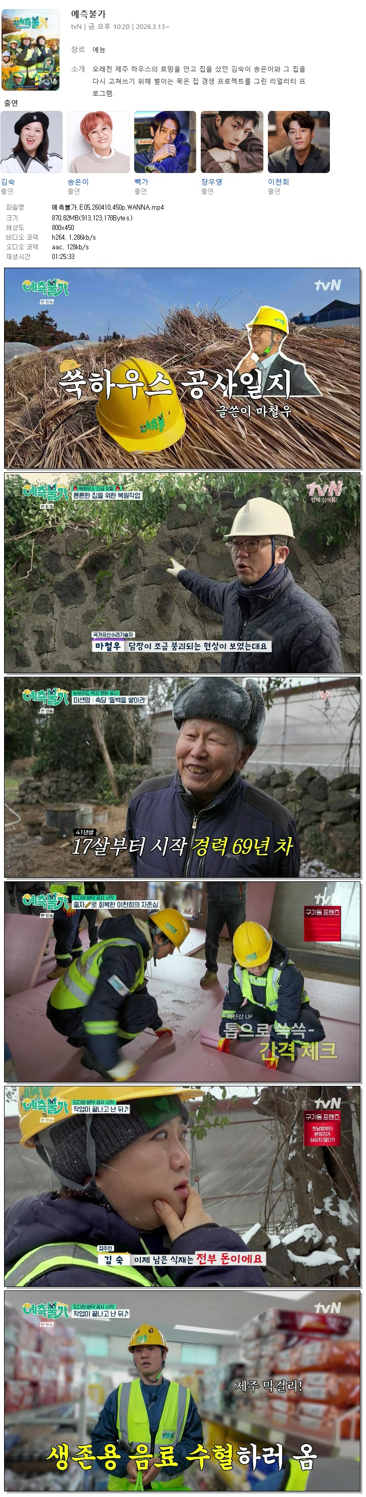 | [TVN] 예측불가.E05.260410.450p.WANNA[김숙, 송은이].mp4 | 870.8 M | 01:25:33 | 800x450 |