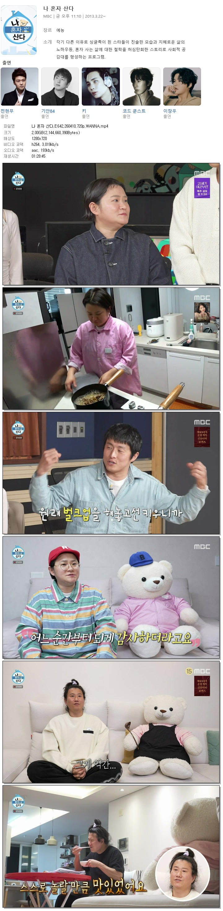 | [MBC] 나 혼자 산다.E642.260410.720p.WANNA[김신영, 임우일].mp4 | 2 G | 01:28:45 | 1280x720 |