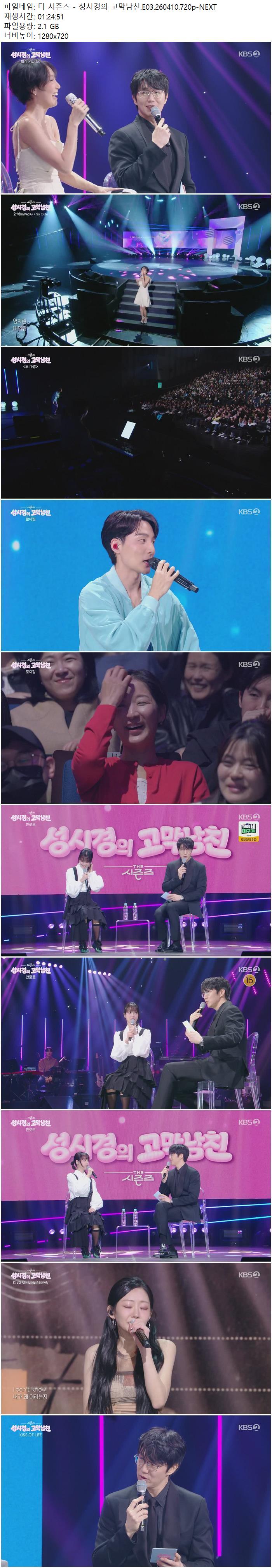 | 더 시즌즈 - 성시경의 고막남친.E03.260410.720p-NEXT.mp4 | 2.1 G | 01:24:51 | 1280x720 |