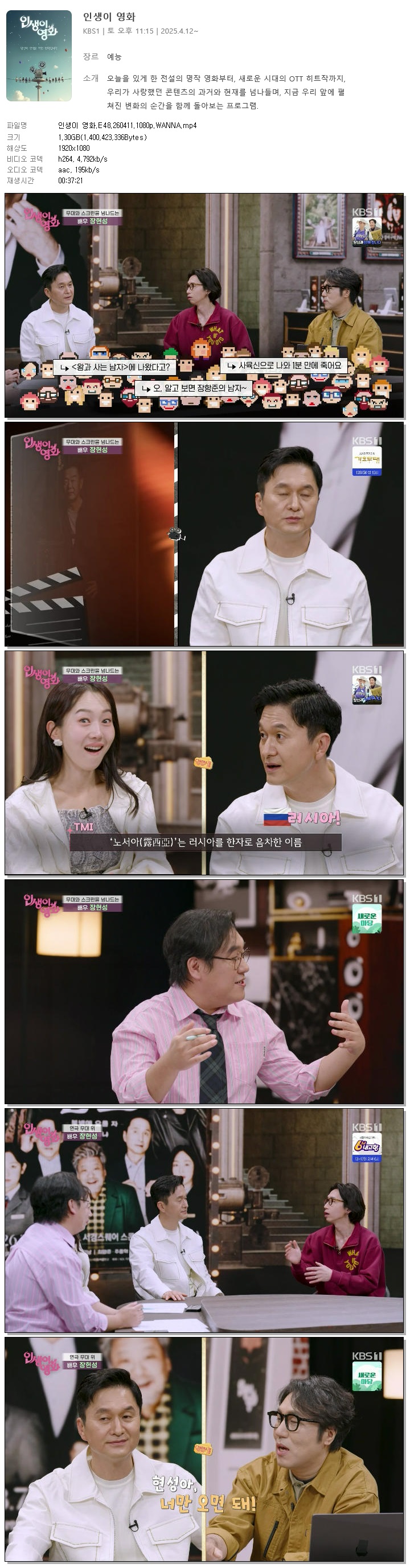 | [KBS1] 인생이 영화.E48.260411.1080p.WANNA.mp4 | 1.3 G | 00:37:21 | 1920x1080 |