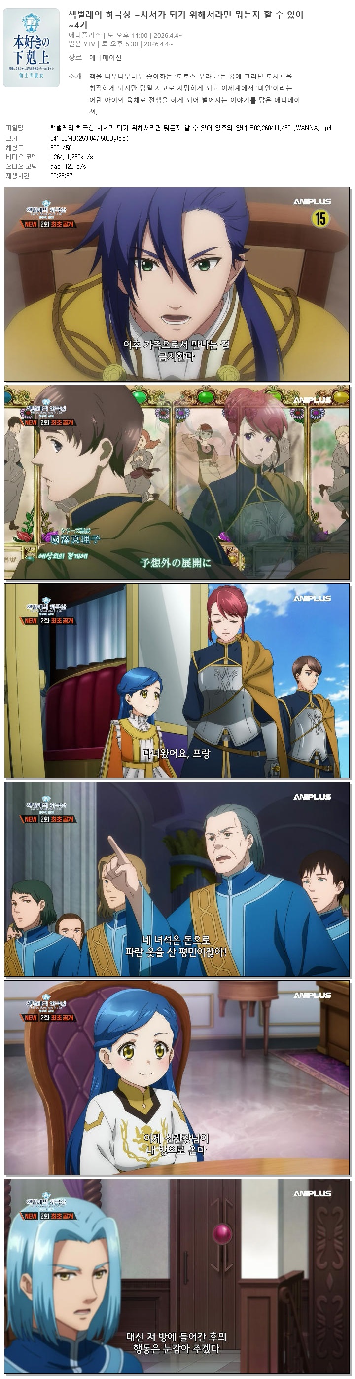 책벌레의 하극상 사서가 되기 위해서라면 뭐든지 할 수 있어 영주의 양녀.E02.260411.450p.WANNA