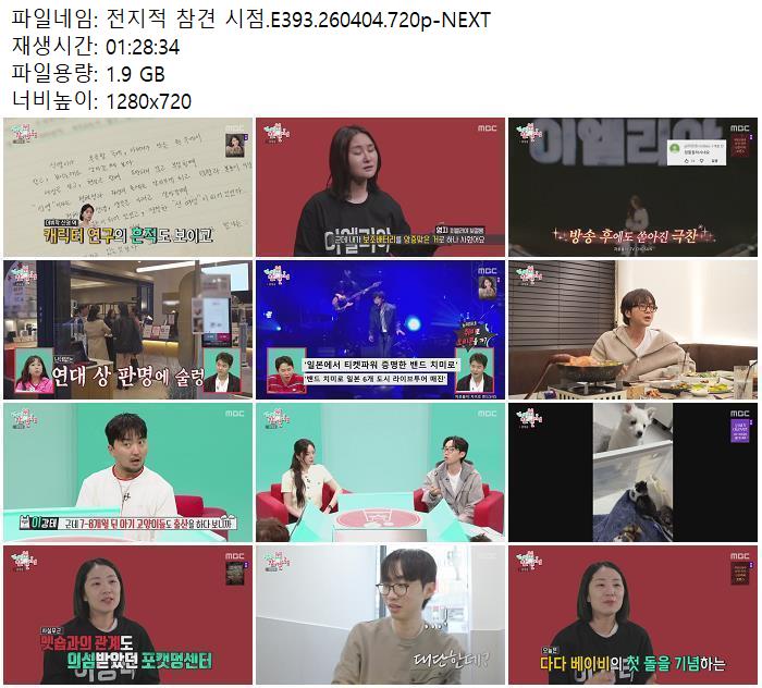 | 전지적 참견 시점.E393.260404.720p-NEXT.mp4 | 1.9 G | 01:28:00 | 1280x720 |