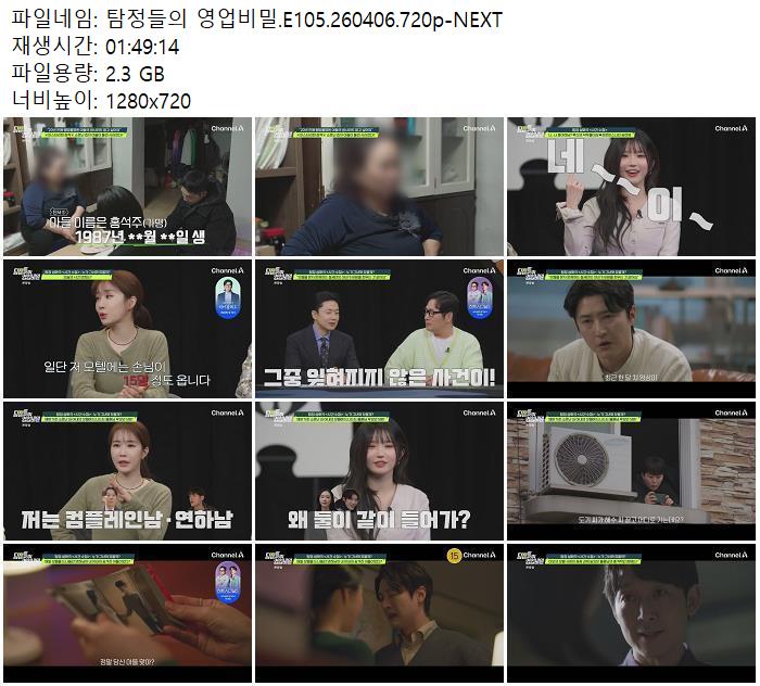 | 탐정들의 영업비밀.E105.260406.720p-NEXT.mp4 | 2.3 G | 01:49:00 | 1280x720 |