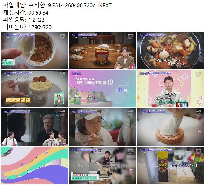 | 프리한19.E514.260406.720p-NEXT.mp4 | 1.2 G | 00:59:34 | 1280x720 |