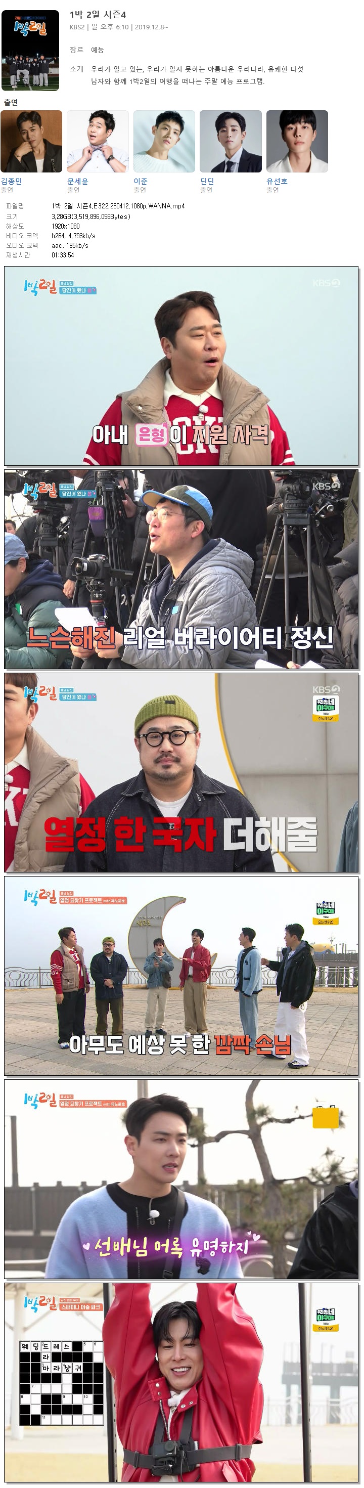 [KBS2] 1박 2일 시즌4.E322.260412.1080p.WANNA[유노윤호, 강재준].mp4 3.3 G 01:33:54 1920x1080