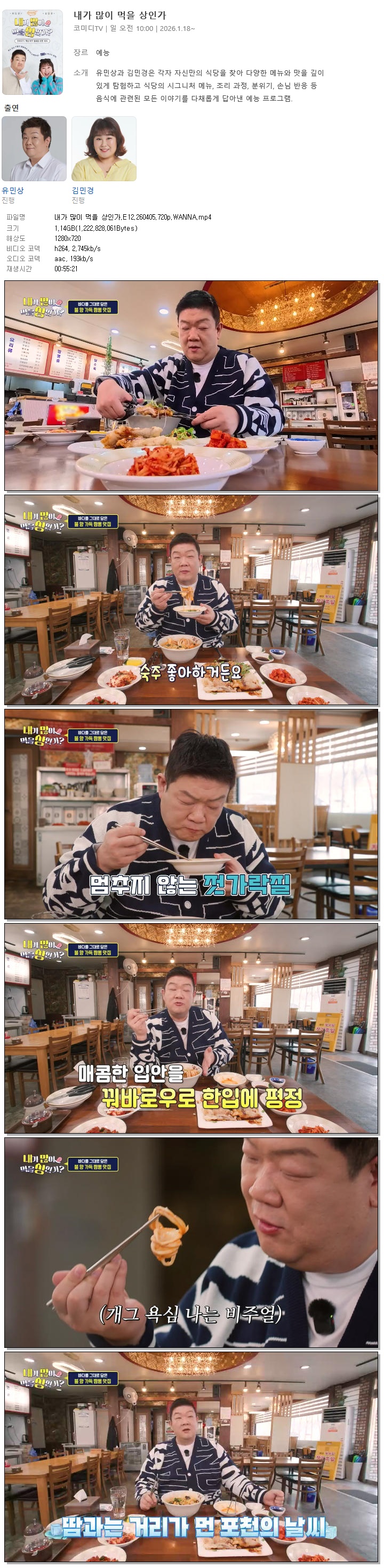 [코미디TV] 내가 많이 먹을 상인가.E12.260405.720p.WANNA[유민상, 김민경].mp4 1.1 G 00:55:21 1280x720