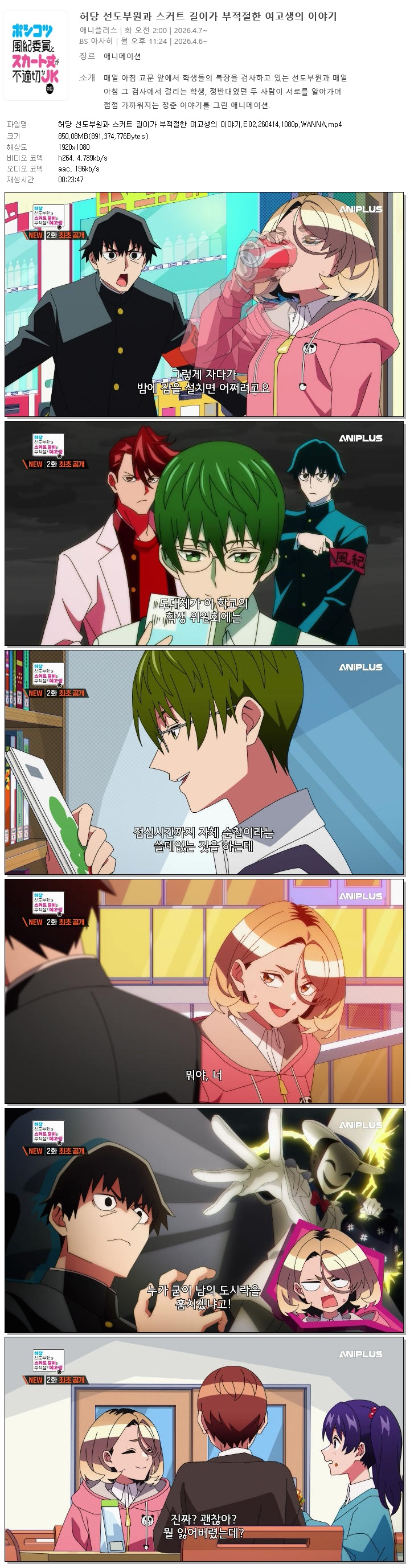 | 허당 선도부원과 스커트 길이가 부적절한 여고생의 이야기.E02.260414.1080p.WANNA.mp4 | 850.1 M | 00:23:47 | 1920x1080 |