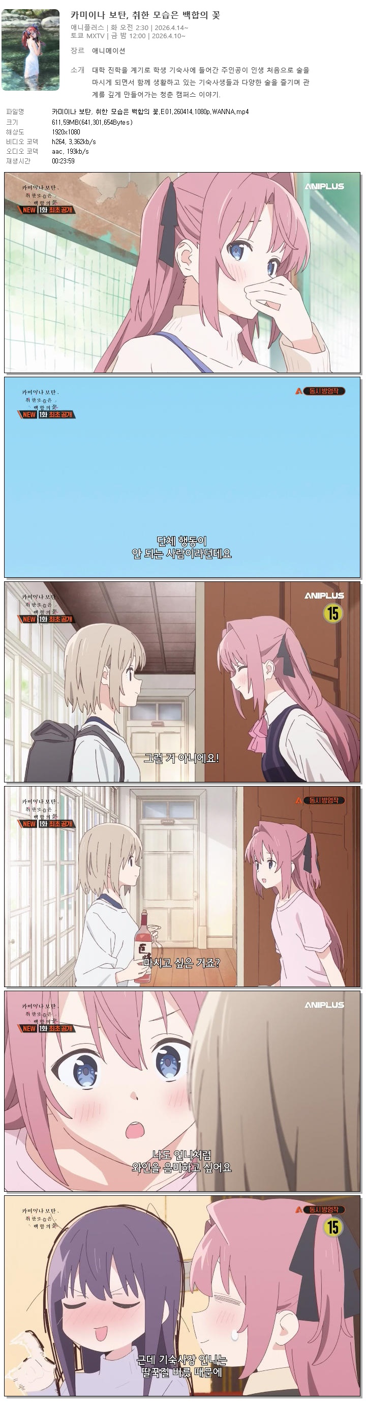 | 카미이나 보탄, 취한 모습은 백합의 꽃.E01.260414.1080p.WANNA.mp4 | 611.6 M | 00:23:59 | 1920x1080 |