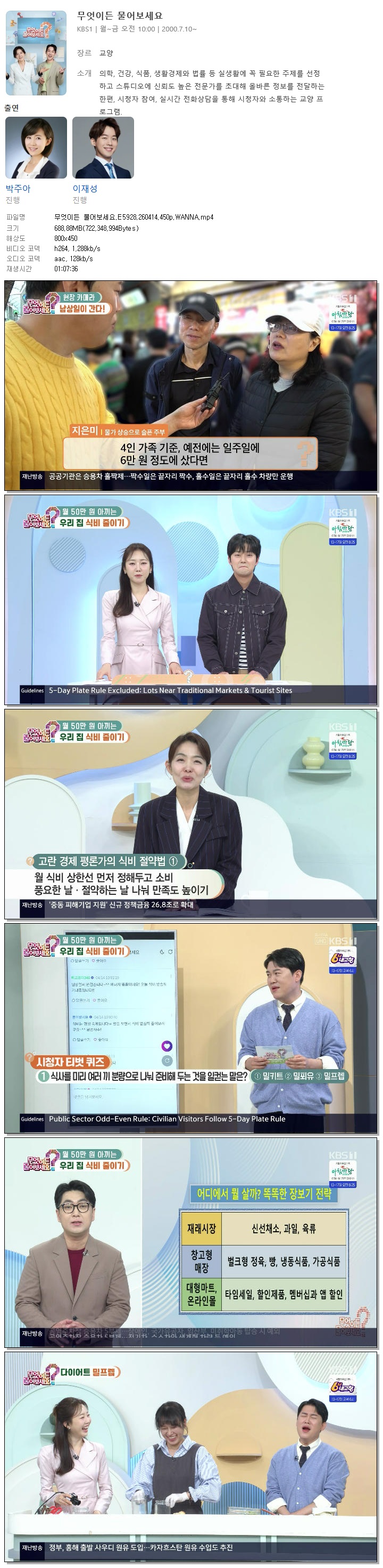| [KBS1] 무엇이든 물어보세요.E5928.260414.450p.WANNA[박주아, 이재성].mp4 | 688.9 M | 01:07:36 | 800x450 |