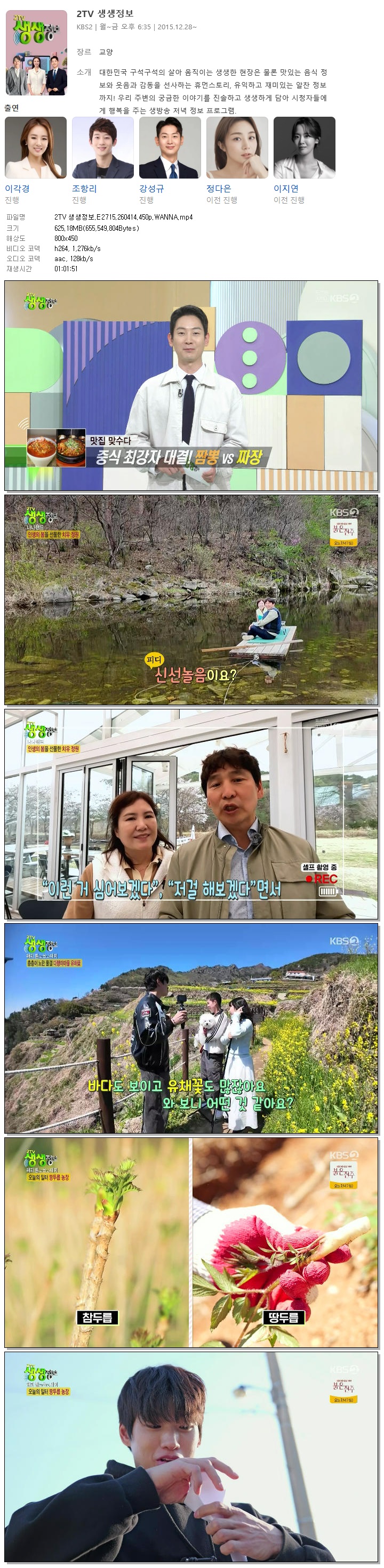 | [KBS2] 2TV 생생정보.E2715.260414.450p.WANNA[이각경, 조항리].mp4 | 625.2 M | 01:01:51 | 800x450 |