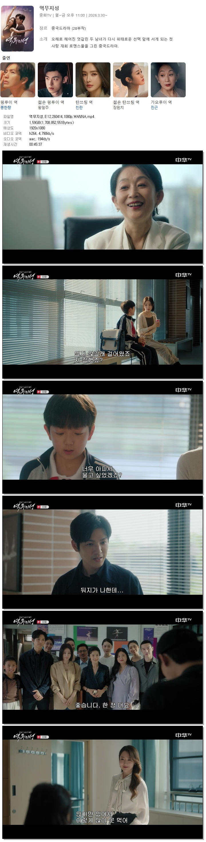 | [중화TV] 역무지성.E12.260414.1080p.WANNA[종한량, 친란].mp4 | 1.6 G | 00:45:37 | 1920x1080 |