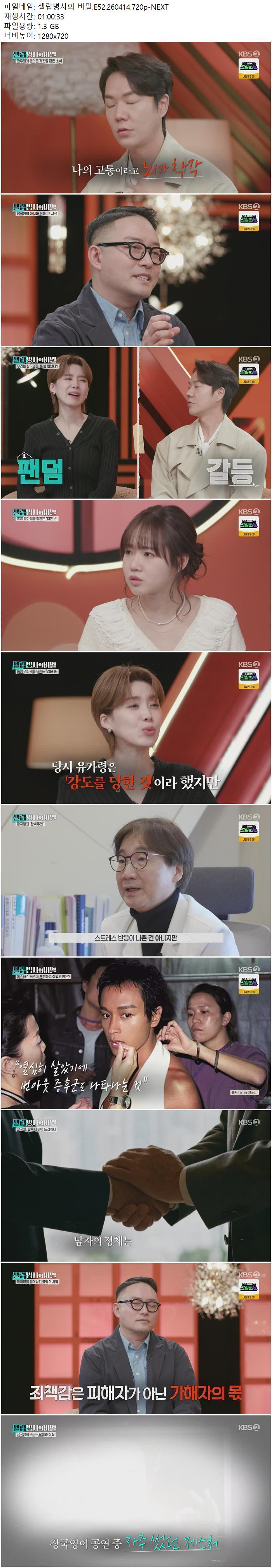 | 셀럽병사의 비밀.E52.260414.720p-NEXT.mp4 | 1.3 G | 01:00:33 | 1280x720 |