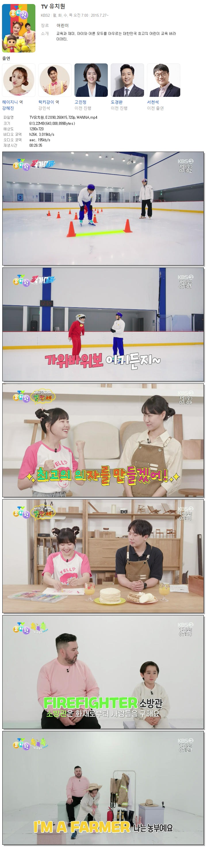 | [KBS2] TV유치원.E2090.260415.720p.WANNA.mp4 | 613.2 M | 00:26:35 | 1280x720 |