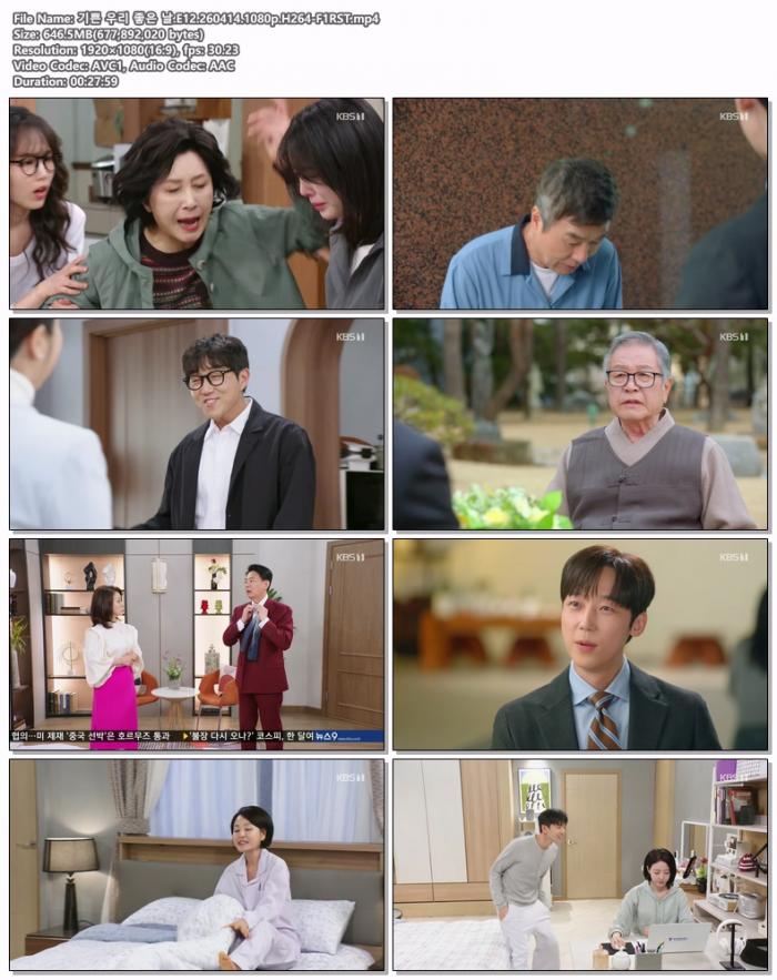 | 기쁜 우리 좋은 날.E12.260414.1080p.H264-F1RST.mp4 | 646.5 M | 00:27:59 | 1920x1080 |