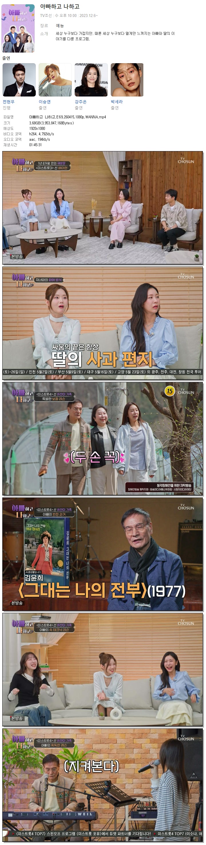 | [TV조선] 아빠하고 나하고.E69.260415.1080p.WANNA[허찬미].mp4 | 3.7 G | 01:45:31 | 1920x1080 |
