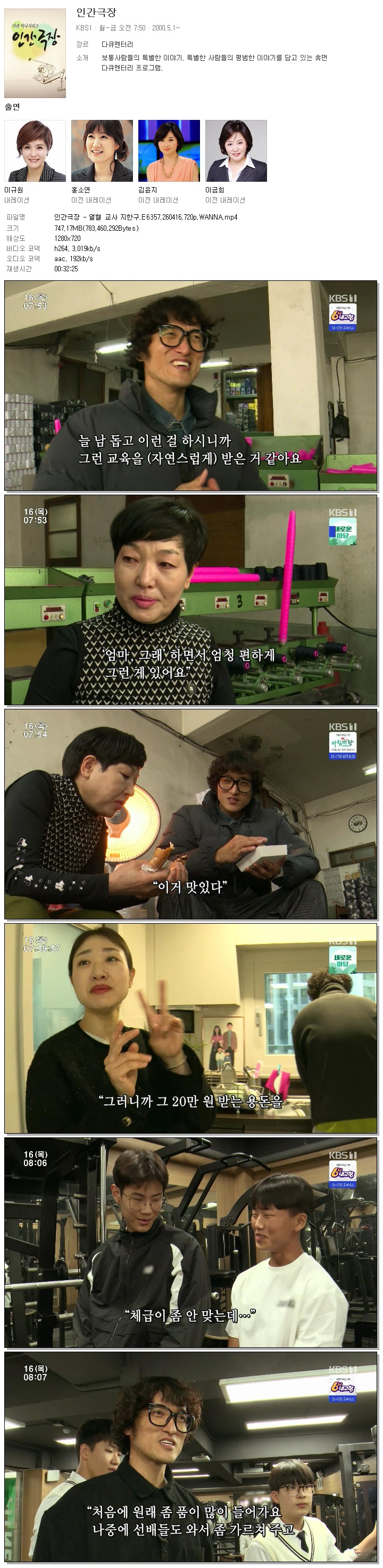 | [KBS1] 인간극장.E6357.260416.720p.WANNA.mp4 | 747.2 M | 00:32:25 | 1280x720 |