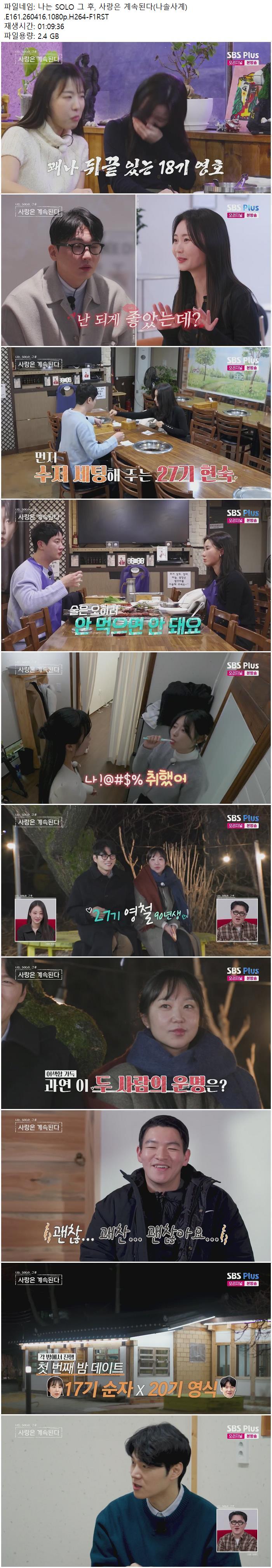 | 나는 SOLO 그 후, 사랑은 계속된다(나솔사계).E161.260416.1080p.H264-F1RST.mp4 | 2.4 G | 01:09:36 | 1920x1080 |