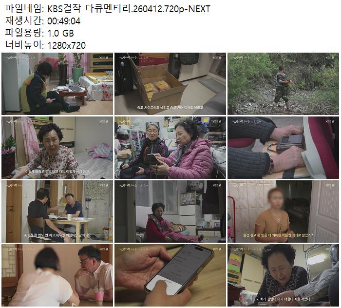 KBS걸작 다큐멘터리.260412.720p-NEXT.mp4 1 G 00:49:04 1280x720