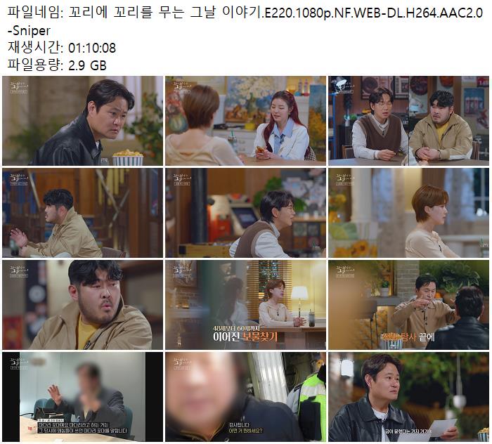 | 꼬리에 꼬리를 무는 그날 이야기.E220.1080p.NF.WEB-DL.H264.AAC2.0 -Sniper.mkv | 2.9 G | 01:10:00 | 1920x1080 |