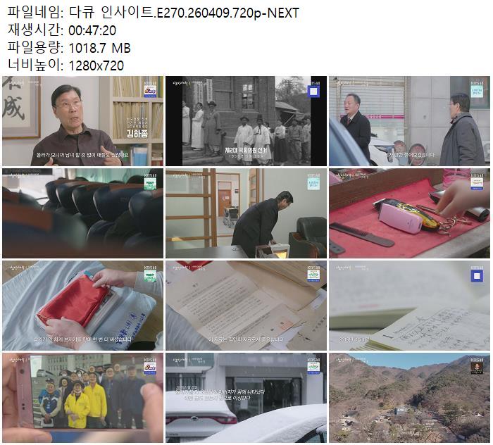 | 다큐 인사이트.E270.260409.720p-NEXT.mp4 | 1018.7 M | 00:47:20 | 1280x720 |
