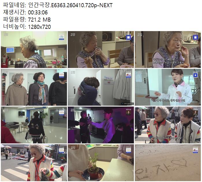 | 인간극장.E6363.260410.720p-NEXT.mp4 | 721.2 M | 00:33:06 | 1280x720 |