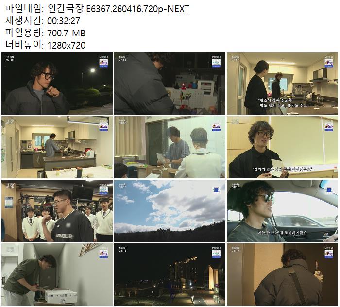 | 인간극장.E6367.260416.720p-NEXT.mp4 | 700.7 M | 00:32:27 | 1280x720 |