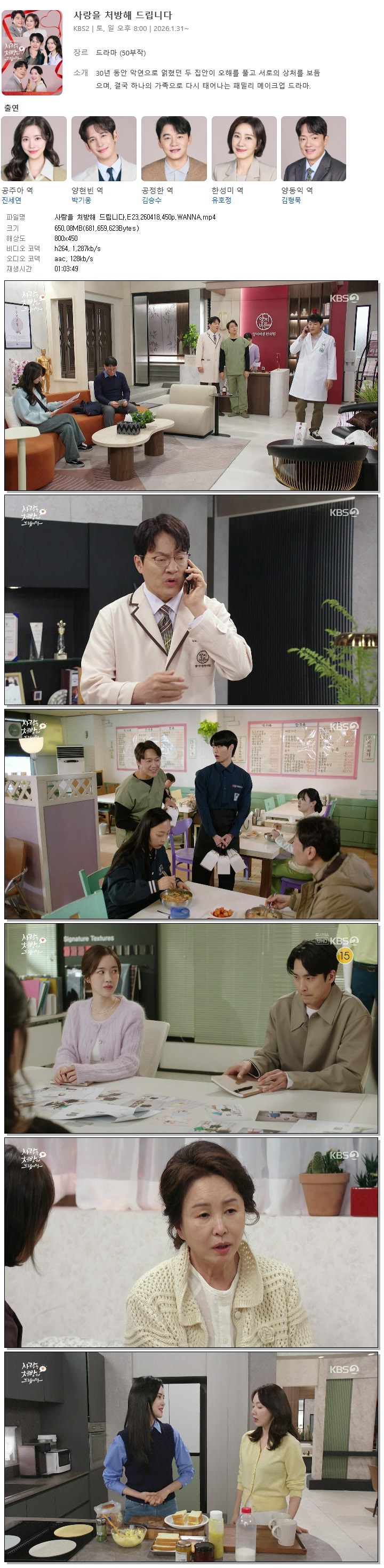 | [KBS2] 사랑을 처방해 드립니다.E23.260418.450p.WANNA[진세연, 박기웅].mp4 | 650.1 M | 01:03:49 | 800x450 |