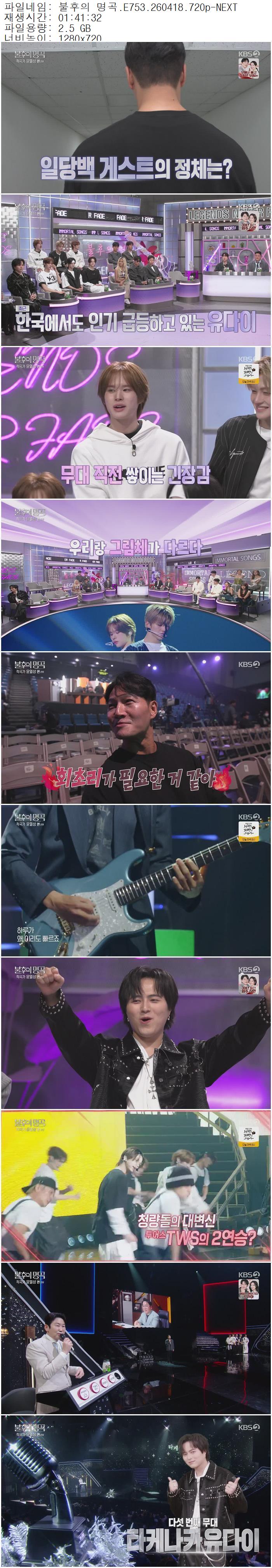 | 불후의 명곡.E753.260418.720p-NEXT.mp4 | 2.5 G | 01:41:32 | 1280x720 |