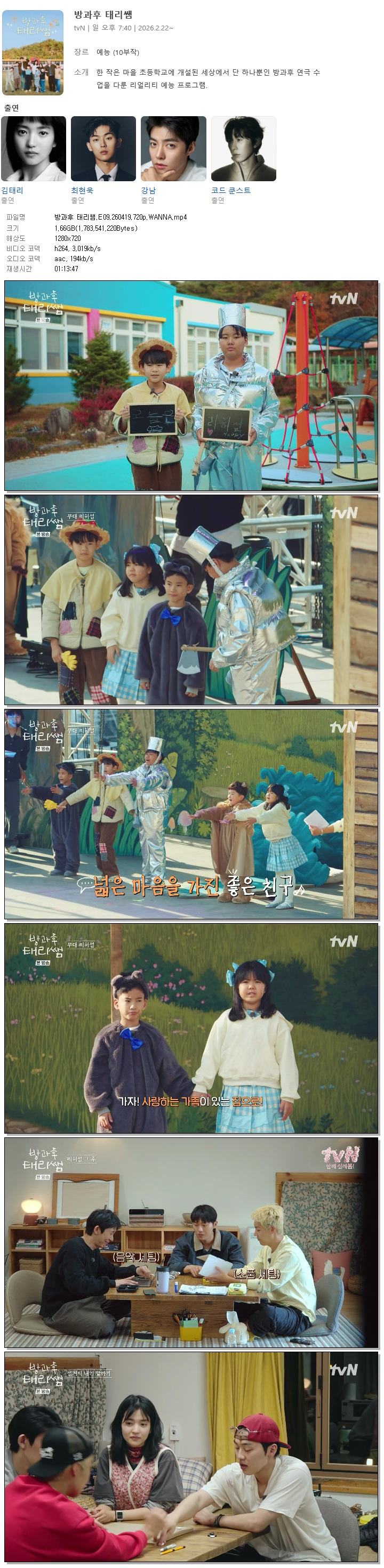 [TVN] 방과후 태리쌤.E09.260419.720p.WANNA[강남, 코드쿤스트].mp4 1.7 G 01:13:47 1280x720